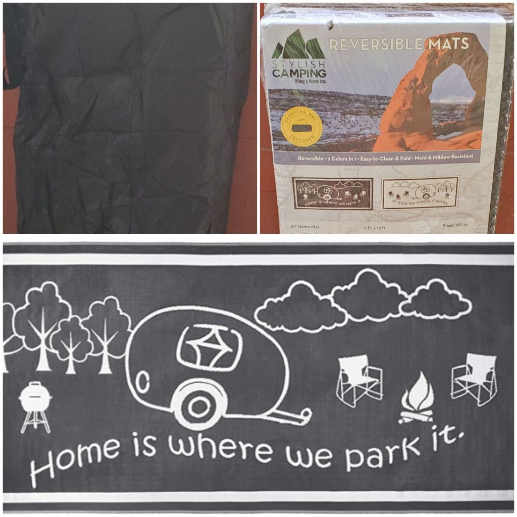 I found some other really cool items too just to add to that homey feel. I small welcome mat just as you enter the trailer and a large 18′ by 8′ rug to place outside the door. They will not only help keep the dirt out but add to the decor of the trailer.